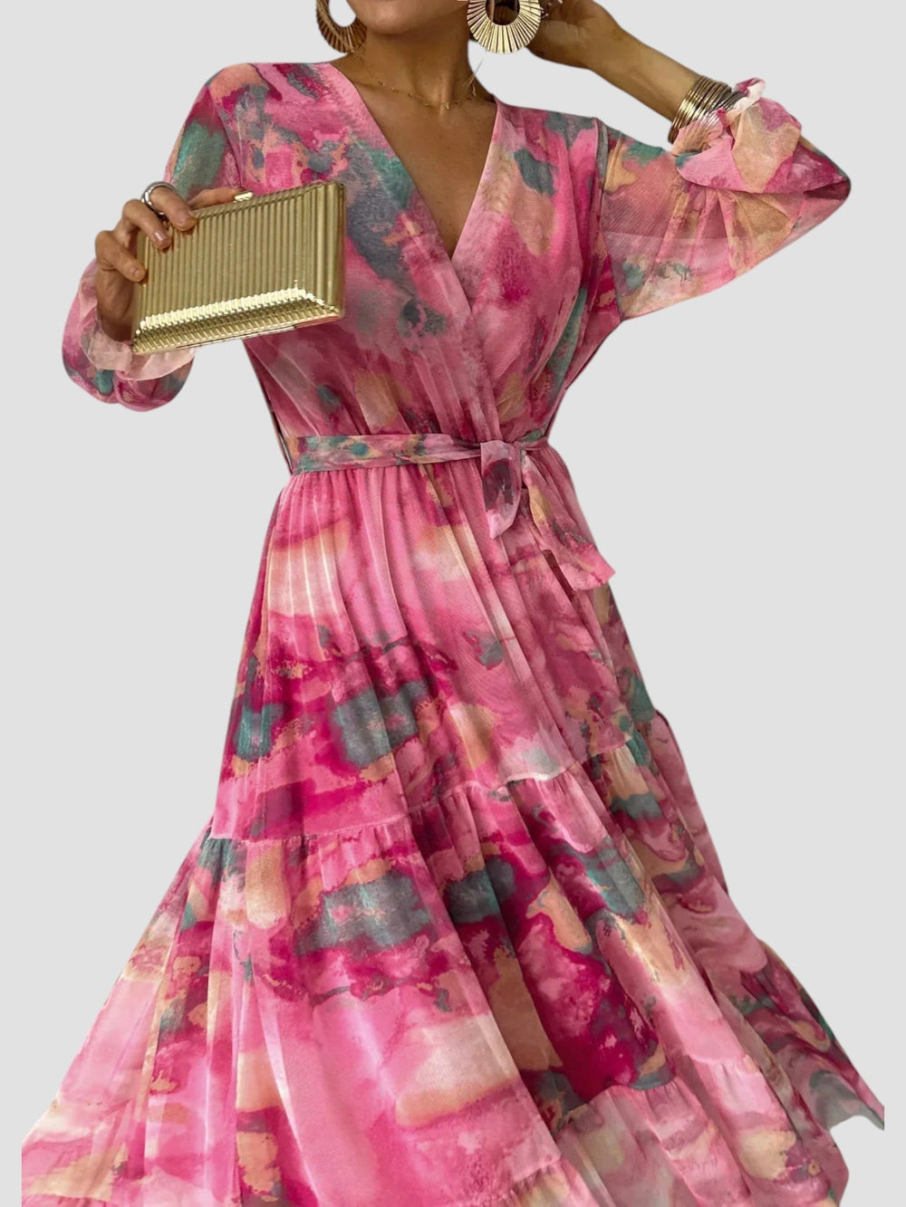 Ariadne™ - Elegant Long Dress with Print and V-Neck for Women
