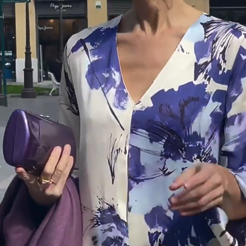Avice™ - Long Sleeve Floral Blouse with Sparkling Pocket