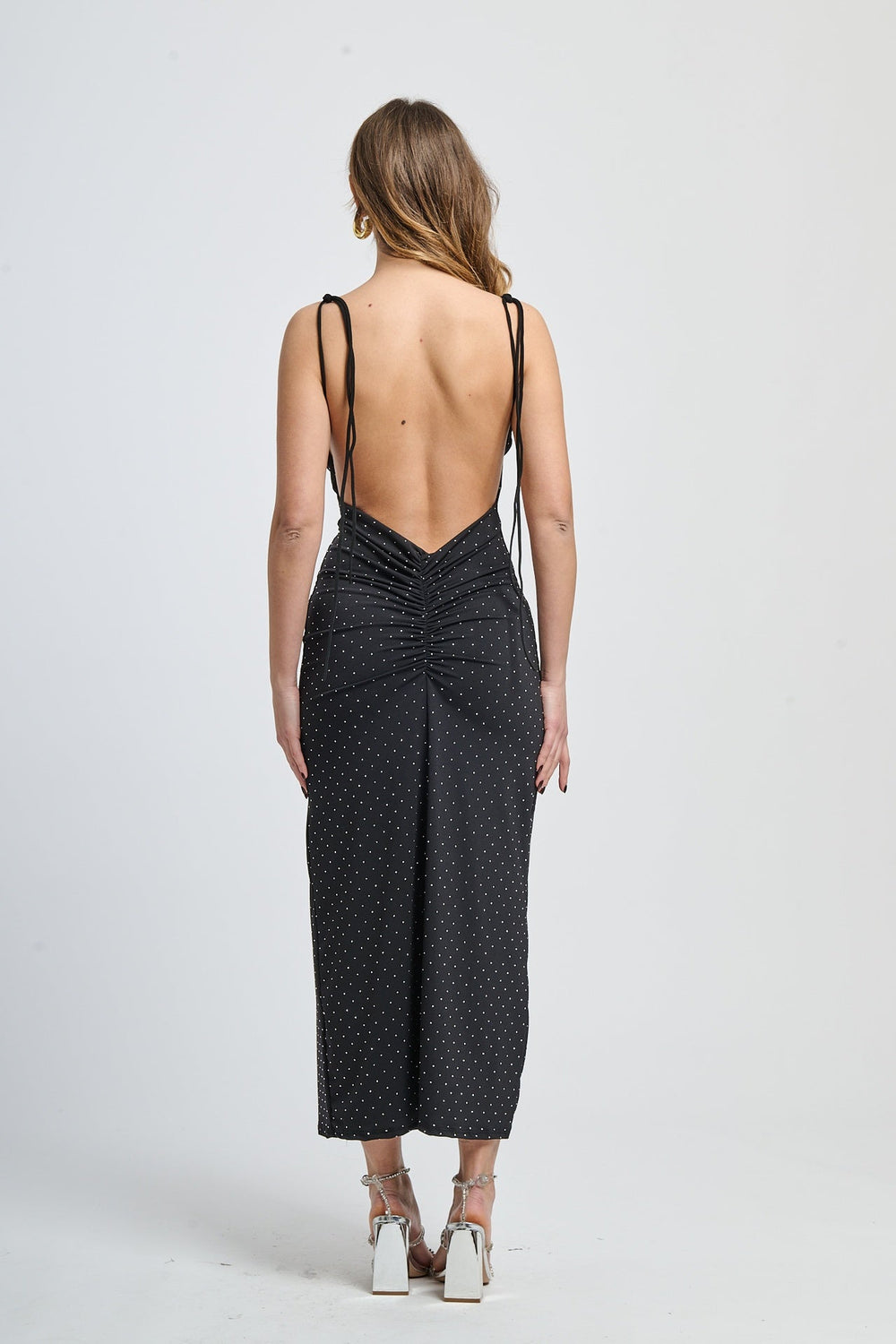 "Delfina" Dress – Elegant Long Dress in Polyester with Thin Straps and Tied Back