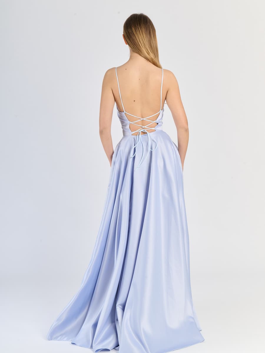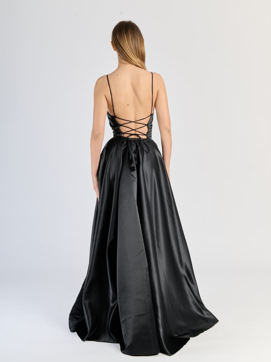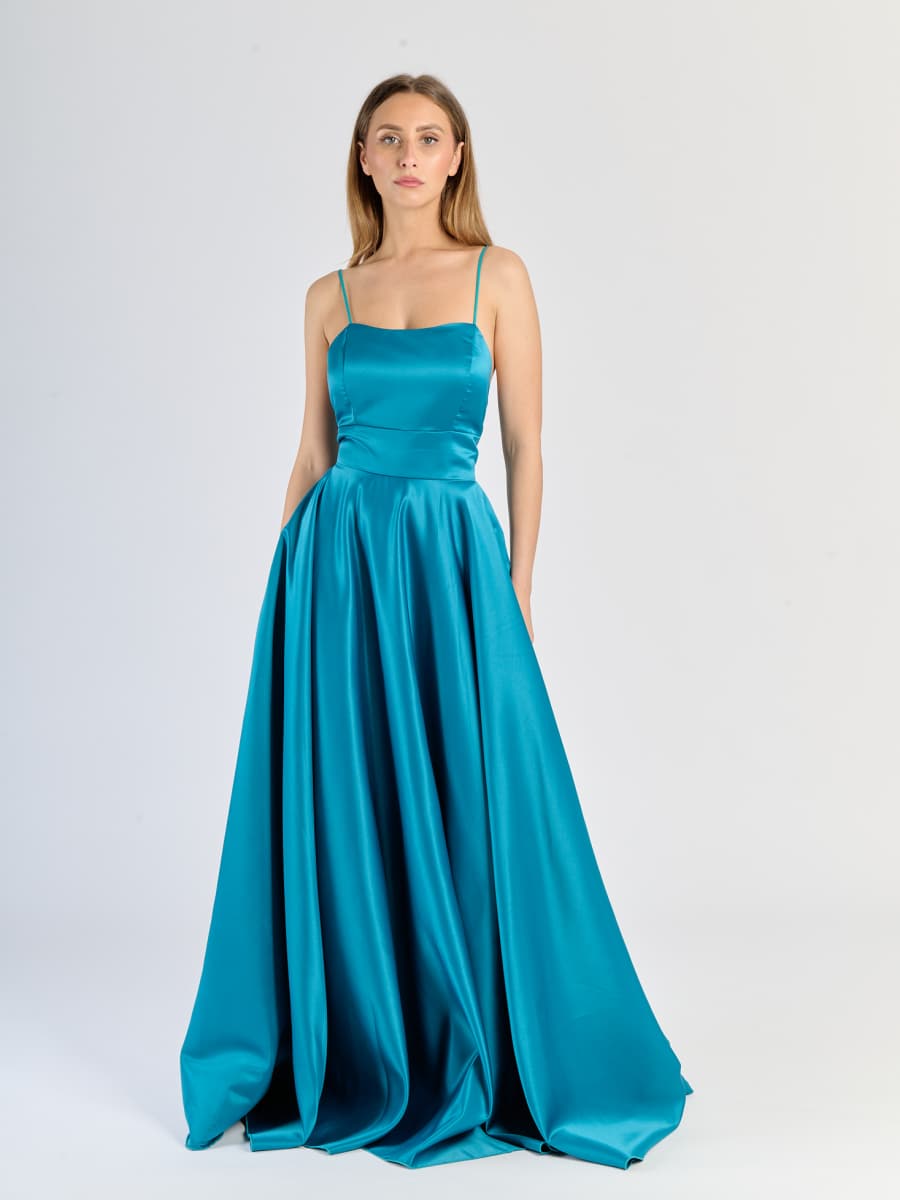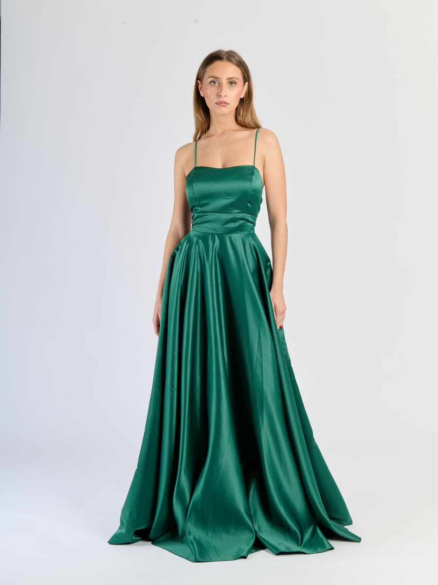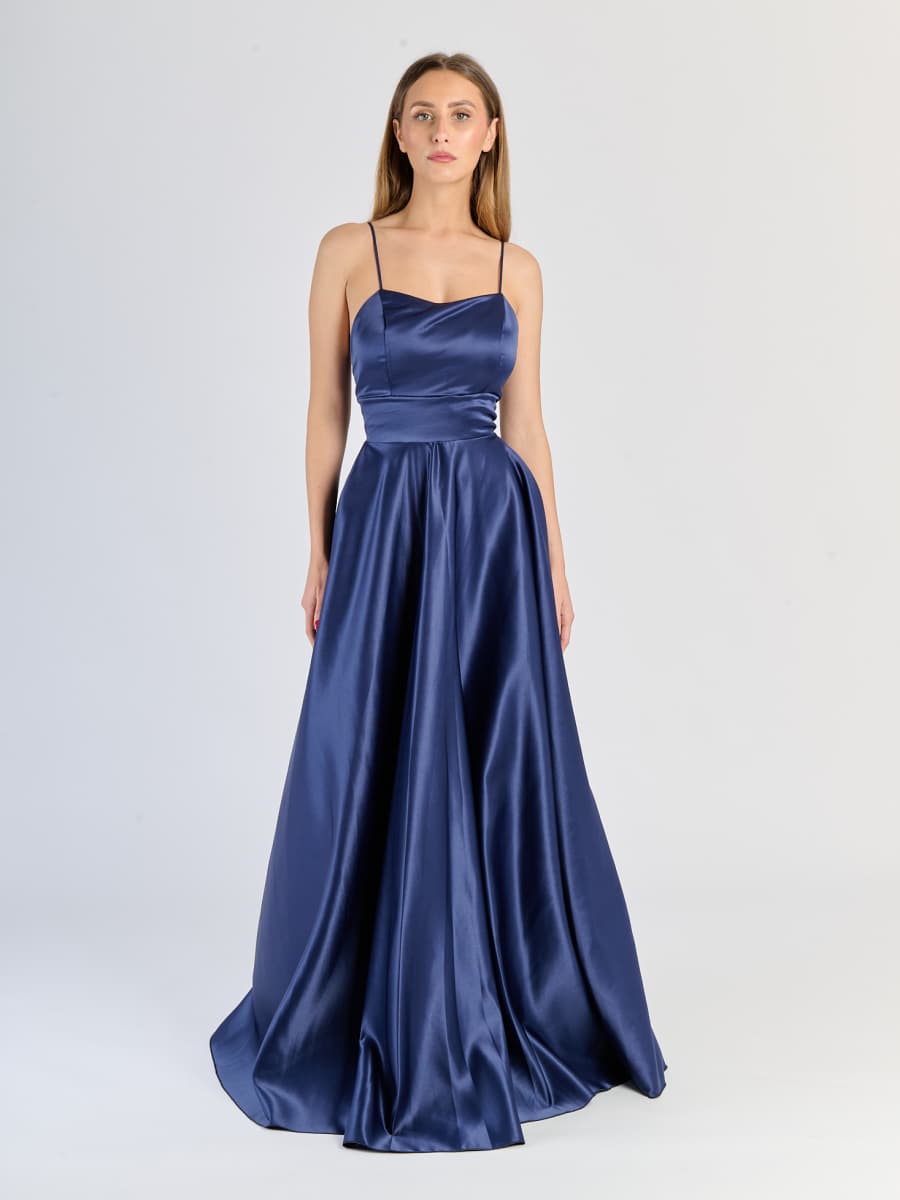 Elegant Long Satin Dress with Thin Straps – "Estella"